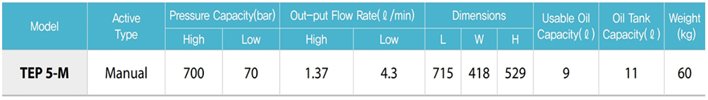 韓國TECPOS TEP5電動液壓泵耐壓能力(高)700bar,耐壓能力(低)70bar, TEP5電動液壓泵實物展示: