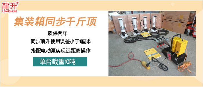 集裝箱同步千斤頂介紹: 【產(chǎn)品名稱】集裝箱同步千斤頂 【產(chǎn)品品牌】龍升品牌 【產(chǎn)品保質(zhì)】24個(gè)月 【產(chǎn)品專利】本產(chǎn)品是我公司專利產(chǎn)品,專利號(hào)ZL202422693425.7 【產(chǎn)品型號(hào)】LH1410G-EP 【產(chǎn)品定制】集裝箱同步千斤頂單臺(tái)載荷10噸,可定制噸位、行程、無塵型、高精度同步頂升(誤差≤1mm)。 【典型應(yīng)用】常用于需要同步頂升的精密儀器搬運(yùn)、集裝箱運(yùn)輸、港口集裝箱搬運(yùn)、儲(chǔ)能柜運(yùn)輸,建筑工程、重型設(shè)備與機(jī)械等多個(gè)領(lǐng)域。 集裝箱同步千斤頂搭配組合式搬運(yùn)小坦克、集裝箱搬運(yùn)小坦克、電動(dòng)搬運(yùn)小坦克使用。