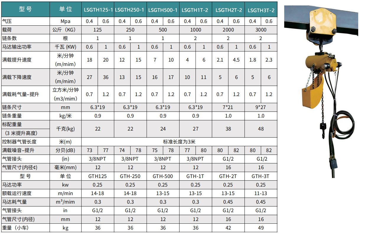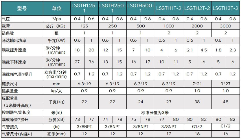 LSGTH型機(jī)械式氣動(dòng)葫蘆介紹 【產(chǎn)品名稱】LSGTH型機(jī)械式氣動(dòng)葫蘆 【產(chǎn)品品牌】龍升 【產(chǎn)品規(guī)格】125kg-3t 【產(chǎn)品保質(zhì)】質(zhì)保2年(易損件除外) 【產(chǎn)品定制】可按需定制行程、銅制上下吊鉤、100級(jí)鏈條以及鍍鋅材質(zhì)鏈條 【應(yīng)用領(lǐng)域】廣泛應(yīng)用于石油、化工、紡織、船廠、噴漆、物流、碼頭、汽車制造、礦山等易燃易爆、高溫、高粉塵、腐蝕性強(qiáng)的的作業(yè)場(chǎng)所,也可用于產(chǎn)量大、連續(xù)作業(yè)性強(qiáng)的汽車、拖拉機(jī)、電機(jī)、電冰箱等制造行業(yè)。