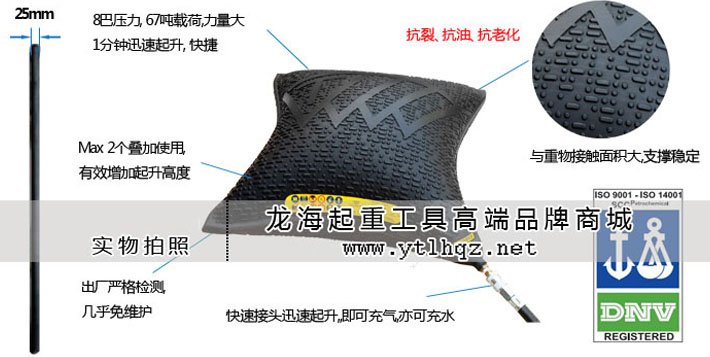 【產(chǎn)品名稱】67噸氣動(dòng)起重氣墊 【產(chǎn)品品牌】特瑞堡TRELLEBORG 【工作壓力】8巴 【產(chǎn)品保質(zhì)】保質(zhì)1年 【產(chǎn)品材質(zhì)】橡膠化合物與芳綸纖維加固的工業(yè)橡膠,抗裂抗油抗老化,質(zhì)輕而堅(jiān)韌 【符合標(biāo)準(zhǔn)】67噸氣動(dòng)起重氣墊采用集成符合管理系統(tǒng),符合國(guó)際標(biāo)準(zhǔn):ISO 9001,ISO 14001,SCC**2008/05,DNV標(biāo)準(zhǔn)認(rèn)證等 【產(chǎn)品來(lái)源】氣動(dòng)起重氣墊 【是否定制】暫不提供產(chǎn)品定制服務(wù) 【典型應(yīng)用】救災(zāi)救援,狹小空間頂升,重型機(jī)械頂升,管道對(duì)接修理等